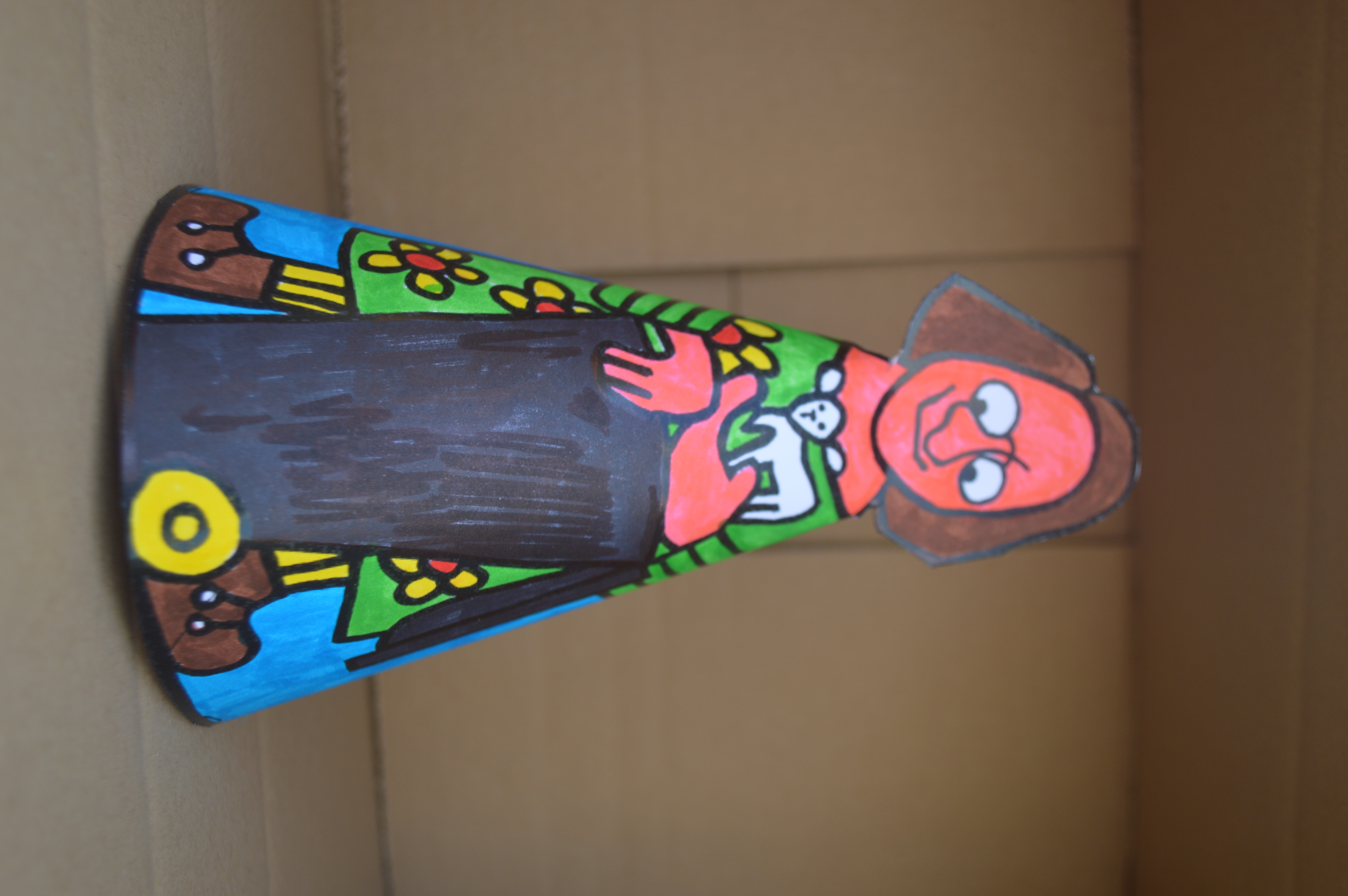 Met het popje kan in een zelfgemaakt poppenhuis van dozen gespeeld worden. Met het popje kunnen ook gesprekken gevoerd worden in de kring. We kunnen met Madame Poubelle praten over hoe wij de wereld leuker kunnen maken.
